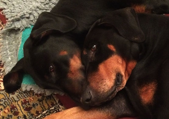 Currently we have two Dobermanns, Chelsea (age 12) and Biba (age 5).
