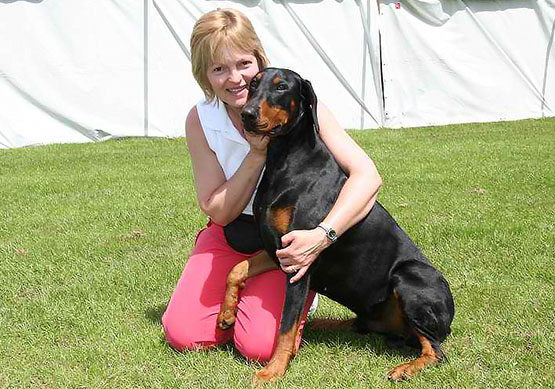 Tricia first had a Dobermann, Rocky, when she lived in Greece, but he died, age 4. Later, while living in England, Tricia obtained Benson in 2004 from Phil and Dawn Goodall. Initially, he was purely a pet, but Tricia then decided to try showing. After initial success, Benson qualified for Crufts in 2006 and 2007.